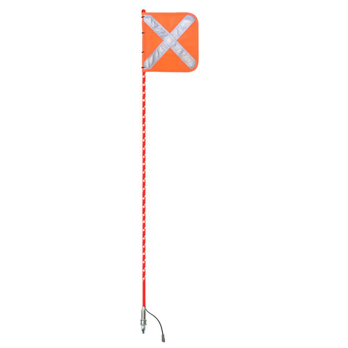 1.5mtr Red Full Pole LED Buggy Whip with Female Deutsch Plug / Multi-volt 12V-24V / Orange Reflective X Mesh Vehicle Safety Flag / Large Anti-Rotational Quick Release Base
